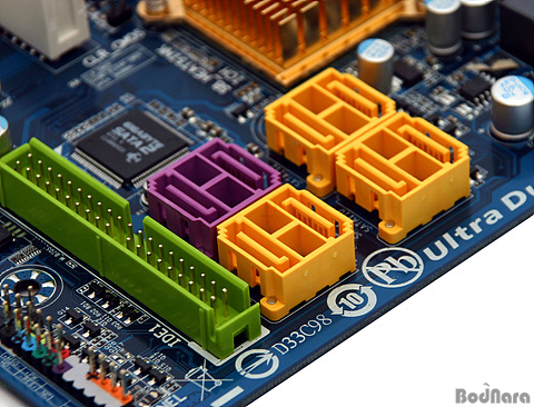 ICH9R »ç¿ì½ººê¸´Áö¸¦ ÅëÇÑ 6°³ÀÇ S-ATA(ÁÖȲ»ö) Æ÷Æ® Á¦°ø°ú GIGABYTE SATA 2Ĩ¼ÂÀ» ÅëÇÑ 2°³ÀÇ SATA(º¸¶ó»ö) Æ÷Æ®¸¦ °®Ãç ¶Ù¾î³­ È®À强À» Á¦°øÇÑ´Ù. Âü°í·Î ¹éÆÐ³Î»ó¿¡´Â eSATA Æ÷Æ®¸¦ °®Ãß°í ÀÖÁö ¾ÊÁö¸¸ ÇÔ²² Á¦°øµÇ´Â È®Àå ºê¶óÄÏÀ» ÀÌ¿ëÇØ ³»ºÎ SATAÆ÷Æ®¸¦ eSATAÆ÷Æ®·Î »ç¿ëÇÒ ¼ö ÀÖµµ·Ï ¹è·ÁÇØÁÖ°í ÀÖ´Ù.