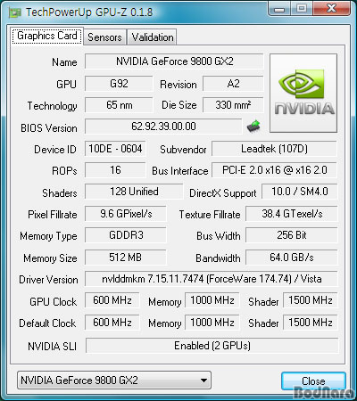 [GPU-Z 0.18, Leadtek WinFast PX9800 GX2]
