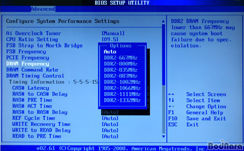 ¾Æ·¡´Â 45nm ÀÎÅÚ ÄÚ¾î2 µà¿À E8500 CPU¿Í Kingston PC2-9200 1GB x 2°³ÀÇ ¸Þ¸ð¸®¸¦ ÀåÂøÇÏ¿´À» ¶§ ¼³Á¤ÇÒ ¼ö ÀÖ´Â °ªÀ» Á¤¸®ÇÑ °ÍÀ¸·Î CPU³ª ¸Þ¸ð¸®¿¡ µû¶ó ÀÌ ¼³Á¤µéÀº Â÷À̸¦ º¸ÀÏ ¼ö ÀÖ´Ù.