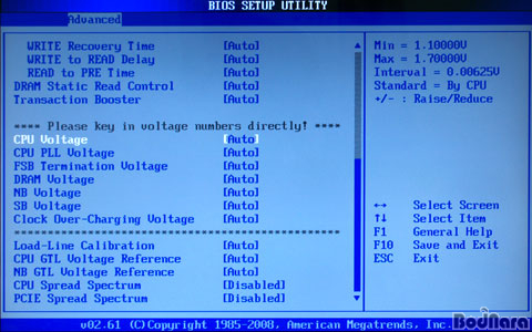 - CPU Voltage : Auto/ 1.10000V - 1.70000V (0.00625V ´ÜÀ§)