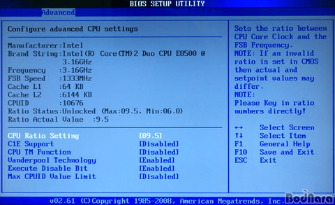 AdvancedÀÇ CPU ¼³Á¤ È­¸é¿¡¼­´Â ±âº»ÀûÀÎ CPUÀÇ Á¤º¸µé Ç¥±â ¹× C1E, CPU TM, ±×¸®°í ¹ÙÀÌ¿À½º¸¦ ÃֽйöÀüÀ¸·Î ¾÷µ¥ÀÌÆ®¸¦ ÁøÇàÇÒ °æ¿ì ÀÎÅÚ EIST ¿É¼Çµµ Ȱ¼ºÈ­µÈ´Ù.