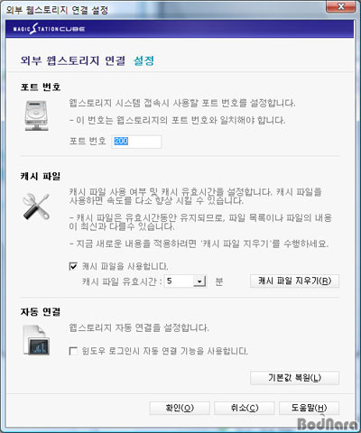 ¿ÜºÎ À¥½ºÅ丮Áö ¿¬°á ¼³Á¤¿¡¼´Â ½Ã½ºÅÛ Á¢¼Ó½Ã »ç¿ëÇÒ Æ÷Æ® ¹øÈ£¿Í ij½Ã ÆÄÀÏ »ç¿ë ¹× ½Ã°£ ¼³Á¤, ±×¸®°í ÀÚµ¿ ¿¬°á ¼³Á¤À» ÇÒ ¼ö ÀÖ´Ù.
