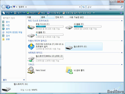 ³×Æ®¿öÅ© µå¶óÀ̺ê·Î ÀâÈù XW-10ÀÇ µå¶óÀ̺ê Á¤º¸¸¦ »ìÆìº¸¸é RAID 5·Î 1.5TBÀÇ °ø°£À» Á¦°øÇÏ´Â °ÍÀ» È®ÀÎÇÒ ¼ö ÀÖ´Ù. ÆÄÀÏ ½Ã½ºÅÛÀ¸·Î À©µµ¿ì¿¡¼ Áö¿øÇÏ´Â NTFS ¹æ½ÄÀ» »ç¿ëÇϰí Àִµ¥ °ü¸®ÀÚ °èÁ¤ µî¿¡¼ º°µµÀÇ ¿î¿µÃ¼Á¦¸¦ À§ÇÑ Á¢¼Ó