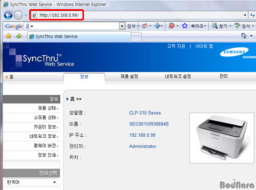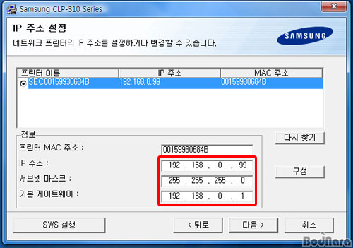 ¼³Á¤ Á¾·áÈÄ ÇÁ¸°ÅÍ¿¡ ÀÔ·ÂÇÑ IPÁÖ¼Ò·Î Á¢¼ÓÇϸé Ãß°¡ÀûÀÎ ÇÁ¸°ÅÍ ¼³Á¤ÀÌ °¡´ÉÇÏ¸ç ¹«¼±³×Æ®¿öÅ© ±â´É ¼³Á¤µµ ÀÌ È¸éÀ» ÅëÇØ¼ ÁøÇàµÈ´Ù.