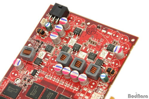 CrossFireX¸¦ À§ÇÑ 2°³ÀÇ ´ÜÀÚµµ °ÇÀçÇÏ¸ç º¸Á¶Àü¿ø ÀÔ·ÂÀ» À§ÇÑ 6ÇÉ ´ÜÀÚ°¡ ¸¶·ÃµÇ¾î ÀÖ°í, ±âÆÇ°ú Äð·¯ÀÇ ¿¬°áÀº 2ÇÉÀ» ÅëÇØ¼­ ÇϰԵȴÙ. AMDÀÇ ¼³°è·¹ÆÛ·±½º»ó Àü¿øºÎ´Â 3+1ÆäÀÌÁî·Î ¾Ë·ÁÁ³´Ù. ½ÇÁ¦ »ý»êǰÀº Àü¿øºÎÀÇ ÀϺΠijÆÛ½ÃÅÍ¿Í MOSFETµîÀÌ Á¦°ÅµÇ¾î °£¼ÒÇÏ°Ô Ãâ½ÃµÇ¾ú´Ù.