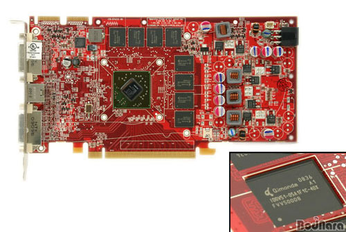 ¸Þ¸ð¸®´Â GDDR5 3200MHz·Î µ¿ÀÛÇϸç, 512MBÀÇ ¿ë·®À» °®Ãß¾ú°í ۸ó´ÙÞäÀÇ Á¦Ç°ÀÌ ÀåÂøµÇ¾ú´Ù. 128Bit ±¸Á¶·Î ¼³°èµÇ¾î ÀÖ´Ù. Radeon HD4830ÀÌ 256Bit / GDDR3 / 1800MhzÀÇ ½ºÆåÀ» °®Ãß¾î 57.6GBit/secÀÇ ´ë¿ªÆøÀ» °®Ãá °ÍÀ» º¸¸é, ¸Þ¸ð¸®ºñÆ®¼ö´Â 256Bit¿¡¼­ 128Bit·Î ÁÙ¾îµé¾úÀ¸³ª, GDDR5¸¦ ä¿ëÇØ Ŭ·°ÀÌ 1800Mhz¿¡¼­ 3200Mhz·Î »ó½ÂÇÏ¿© ´ë¿ªÆøÀÌ 57.6GBytes/secÀ̱⿡ ½ÇÁ¦ ´ë¿ªÆøÀº °ÅÀÇ Â÷À̰¡ ¾ø´Â °ÍÀ» ¾Ë ¼ö ÀÖ´Ù.