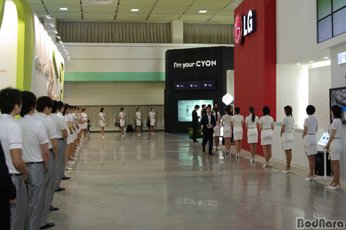 À̵¿Åë½Å»ç¸¦ Á¦¿ÜÇϰí ÀüÀÚ¾÷ü Áß¿¡¼´Â LGÀüÀÚ¿Í »ï¼ºÀüÀÚ¸¸ÀÌ ´ëÇü ºÎ½º¸¦ ¸¸µé¾ú´Âµ¥, LG ºÎ½º´Â ÀÛ³âó·³ º¸¿©Áö´Â Á¦Ç°µé À§ÁÖ·Î ºÎ½º Àü¸éÀ» Ȱ¿ëÇßÀ¸¸ç, ÁÖ¿ä Àü½Ã ǰ¸ñµµ µð½ºÇ÷¹ÀÌ, ÈÞ´ëÆù, ¸ð¹ÙÀÏ Á¦Ç°±º µîÀ̾ú´Ù.     ¡ã ÇØ¿Ü VIP ¹æ¹®À» ¾ÕµÎ°í ´ë¿À» Á¤ºñÇÏ´Â LG ¾È³» ¿ä¿øµé