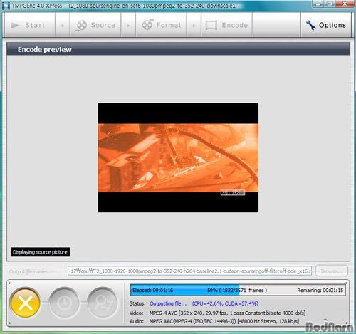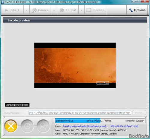 TMPGEnc 4.0 Xpress´Â WinFast PxVC1100¿¡ ¹øµé·Î Á¦°øµÇ¸ç, WinFast PxVC1100¿¡ ÃÖÀûÈµÈ SpursEngine Ç÷¯±×ÀÎÀÌ ÇÔ²² Á¦°øµÈ´Ù. ƯÀÌÁ¡Àº SpursEngine Ç÷¯±×ÀÎÀ» »ç¿ëÇÒ °æ¿ì NVIDIAÀÇ GPGPU ±â¼úÀÎ CUDA¿Í µ¿½Ã¿¡ Ȱ¼ºÈÇÏ¿© »ç¿ëÇÒ ¼ö ÀÖ´Ù´Â Á¡ÀÌ´Ù. ½ÇÁ¦·Î µÎ °¡Áö ±â¼úÀ» µ¿½Ã¿¡ »ç¿ëÇÒ °æ¿ì CUDAÀÇ Á¡À¯À²ÀÌ ³ô¾ÆÁ® GPU »ç¿ë ºñÀ²ÀÌ CUDA ´Üµ¶À¸·Î »ç¿ëÇÒ ¶§º¸´Ù ³ô¾ÆÁø´Ù.