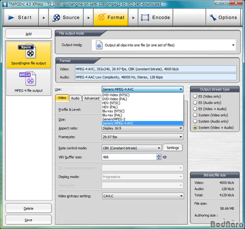 TMPGEnc 4.0 Xpress¿¡ ¼³Ä¡µÈ SpursEngine Ç÷¯±×Àο¡¼´Â DVD ºñµð¿À, HDV, Blu-Ray Æ÷¸Ë Áö¿ø, ±×¸®°í ÀÏ¹Ý MPEG-2¿Í H.264 (MPEG-4 AVC)µµ Áö¿øÇϸç, MPEG-2/ H.264´Â ¾Õ¼ ¼Ò°³ÇÑ °Íó·³ Æ®·£½ºÄÚµù (ÀçÀÎÄÚµù) °úÁ¤¿¡¼ SpursEngineÀ» ÀÌ¿ëÇÑ Çϵå¿þ¾î°¡¼ÓÀÌ ÀÌ·ç¾îÁø´Ù.
