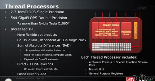AMD ATI´Â HD 4800 ½Ã¸®Á ÅëÇØ 1TeraFLOPsÀÇ Ã³¸® ´É·ÂÀ» Á¦°øÇÏ¸é¼ ¼¹ö±Þ¿¡¼ Á¦°øÇÏ´Â Å×¶ó½ºÄÉÀÏÀÇ ÄÄÇ»ÆÃ ¼º´ÉÀ» ±¸ÇöÇØ ³Â´Ù. ÀÌ¿¡ ÀÌ¾î µîÀåÇÑ DirectX 11 Áö¿ø HD 5800 ½Ã¸®Áî´Â ÀÌÀÇ 2¹è¿¡ À̸£´Â 2TeraFLOPs¸¦
