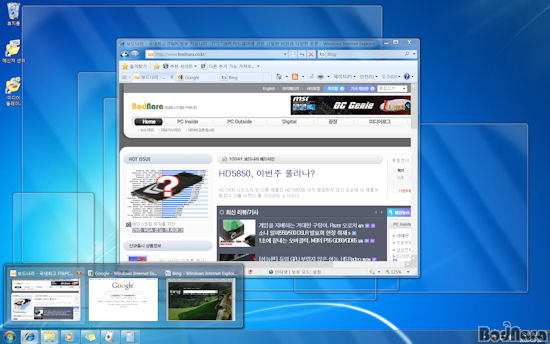 ½ÇÇà ÁßÀΠâÀ» 3D ÇüÅ·Πǥ½ÃÇØÁÖ´Â Çø³ 3D(Flip 3D) ¿ª½Ã À©µµ¿ì ºñ½ºÅ¸¿Í ¸¶Âù°¡Áö·Î À©µµ¿ì 7¿¡¼µµ Windows + Tab ۸¦ »ç¿ëÇØ¼ È£ÃâÇÒ ¼ö ÀÖ´Ù. Çø³ 3D »óÅ¿¡¼ 2°³ÀÇ Å°¸¦ °è¼Ó ´©¸£°í ÀÖÀ¸¸é âµéÀÌ ºü¸£°Ô ȸÀüÇϰí, Çø³ 3D Áß Tab ۸¦ ¶¼°í Windows Ű¿Í ¸¶¿ì½º ½ºÅ©·Ñ ÈÙÀ» ÀÌ¿ëÇØ ¿øÇϴ âÀ» ¼±ÅÃÇÏ´Â µ¿ÀÛ ¹æ½Äµµ ¶È°°´Ù.