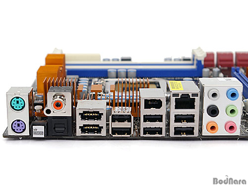 ¹éÆÐ³ÎÀº PS/2 Űº¸µå/ ¸¶¿ì½º Æ÷Æ® °¢°¢ 1°³¿Í 6°³ÀÇ USB 2.0 Æ÷Æ®, SPDIF(Coaxial/ Optical) Ãâ·ÂÆ÷Æ®, ±â°¡ºñÆ® ·£ Æ÷Æ®, 2°³ÀÇ eSATA Æ÷Æ®, IEEE1394 Æ÷Æ®, 7.1ä³Î »ç¿îµå Æ÷Æ®, CMOS Ŭ¸®¾î¸¦ À§ÇÑ ¹öưÀ» Á¦°øÇÑ´Ù.