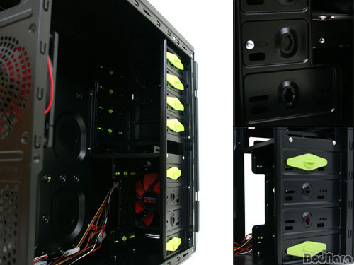 Çí»çÀÇ ³»ºÎ´Â ¿ÜºÎ¿Í ¸¶Âù°¡Áö·Î ºí·¢ µµÀåÀ» ÇÏ¿´À¸¸ç, ¸ÞÀκ¸µå °íÁ¤À» À§ÇÑ 6°³ÀÇ ½ºÆäÀ̼°¡ ¹Ì¸® °íÁ¤µÇ¾î ÀÖ´Ù. ¶ÇÇÑ ¸ÞÀκ¸µå µÞ¸é¿¡ À§Ä¡ÇÏ´Â °ÆÇ¿¡´Â ÃÑ 4 °÷À» ¿øÇüÀ¸·Î Àý»èÇÏ¿© ¸ÞÀκ¸µåÀÇ ¹ß¿ÀÌ »þ½Ã¿Í ¸ÞÀκ¸µå »çÀÌ¿¡ Á¤Ã¼µÇ´Â °ÍÀ» ¹æÁöÇϸç, È®À庣ÀÌ´Â 3.5ÀÎÄ¡¿Í 5.25ÀÎÄ¡ È®Àå º£À̸¦ ÇÕÇÏ¿© ÃÑ 9°³¸¦ Á¦°øÇÑ´Ù.
