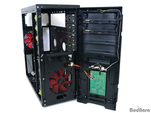 Çϵå LED¿Í Àü¿ø/ ¸®¼Â ¹öư, Àü¸é USB Æ÷Æ®¿Í ¿Àµð¿À Æ÷Æ® ¿¬°á ÀèÀÌ Á¦°øµÇ¸ç, Àü¸é Æä³Î PCB¿Í Äð¸µÆÒ¿¡ Àü·ÂÀ» °ø±ÞÇϱâ À§ÇÑ 4ÇÉ Ä¿³ØÅÍ, RPM Á¶ÀýÀÌ °¡´ÉÇÑ Äð¸µÆÒ ¿¬°á¿ë 4ÇÉ Ä¿³ØÅÍ(³ì»ö ½ºÆ¼Ä¿·Î ±¸ºÐ)¸¦ Á¦°øÇϸç, Çí»çÀÇ ¸Å´º¾ó¿¡´Â ÀÌ °÷¿¡ Äð¸µÆÒ 2°³±îÁö ¿¬°áÇϵµ·Ï ±ÇÀåÇϰí ÀÖ´Ù.