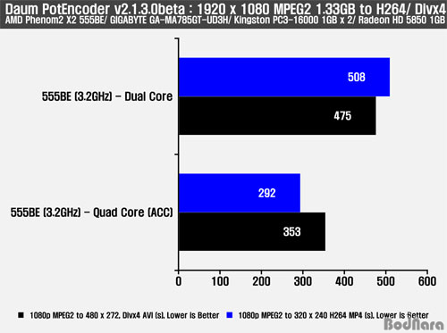 Æä³Ñ2 X2 555BE, µà¾ó vs Äõµå CPU ¼º´Éºñ±³