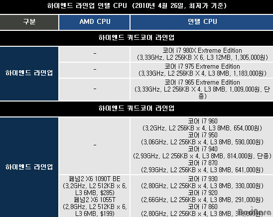ÇÏÀÌ¿£µå ¶óÀξ÷Àº ÆÛÆ÷¸Õ½º ¶óÀξ÷±îÁö¿Í ´Þ¸® AMD¿¡´Â ÀÎÅÚ°ú °æÀïÇÒ ¼ö ÀÖ´Â ¼º´ÉÀÇ Á¦Ç°ÀÌ µîÀåÇÏÁö ¾Ê°í ÀÖ´ø ¶óÀξ÷ÀÌ´Ù. ÇÏÀÌ¿£µå ¶óÀξ÷Àº ÀÌÁ¦ µîÀåÇÑ Æä³Ñ2 X6 ½Ã¸®Áî°¡ º»°ÝÀûÀ¸·Î ÀÎÅÚ ÄÚ¾î i7 ¶óÀξ÷°ú °æÀïÇÒ ¼ö ÀÖÀ» °ÍÀ¸·Î ¿¹»óµÇ°í ÀÖ´Ù.