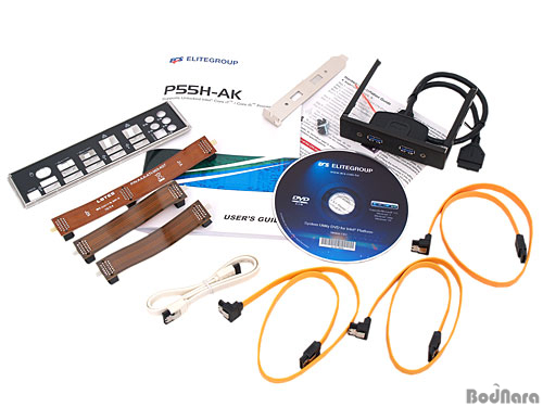 Á¦°øµÈ »ùÇÿ¡´Â P55H-AK »ç¿ëÀÚ ¸Å´º¾ó 1ºÎ, Äü ÀνºÅç °¡À̵å, Àü¿ë I/O ½¯µå, SLi ÄÉÀ̺í°ú SATA3 ÄÉÀ̺í 1°³¿Í SATA ÄÉÀ̺í 3°³, USB 3.0 2Æ÷Æ® ÇÁ·ÐÆ® ÆÐ³Î ¹× °íÁ¤¿ë º¼Æ®, ÄÉÀ̽º ÈÄ¸é ºê¶óÄÏÀÌ Á¦°øµÈ´Ù.