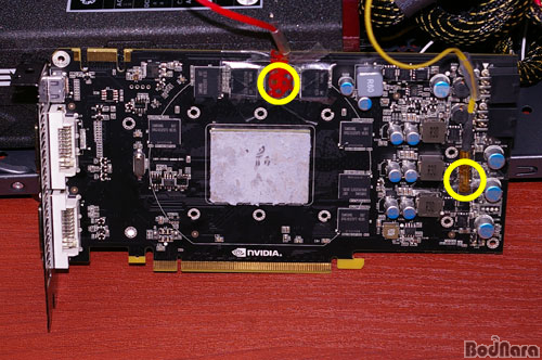 Å×½ºÆ®¿¡ »ç¿ëµÈ ±×·¡ÇÈ Ä«µå´Â °¢ Äð·¯°¡ Á¦°øµÇ´Â ÁöÆ÷½º GTX 460 1024MB ¹öÀüÀ» ÀÌ¿ëÇßÀ¸¸ç, Å×½ºÆ®´Â OCCT v3.1.0À» ÀÌ¿ëÇØ ±×·¡ÇÈ Ä«µå¿¡ 20ºÐ°£ ºÎÇϸ¦ ÁÖ¸é¼ GPUÀÇ ¿Âµµ¸¦, À§ »çÁø¿¡ Ç¥½ÃµÈ ¸Þ¸ð¸®¿Í Àü¿øºÎ ¸ð½ºÆêÀÇ ¿Âµµ¸¦ À߸¸ ZM-MFC2ÀÇ ¹Ú¸· ¼¾¼¸¦ ÀÌ¿ëÇØ ÃøÁ¤Çß´Ù.
