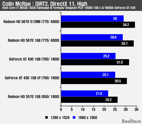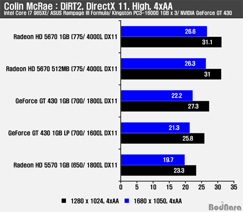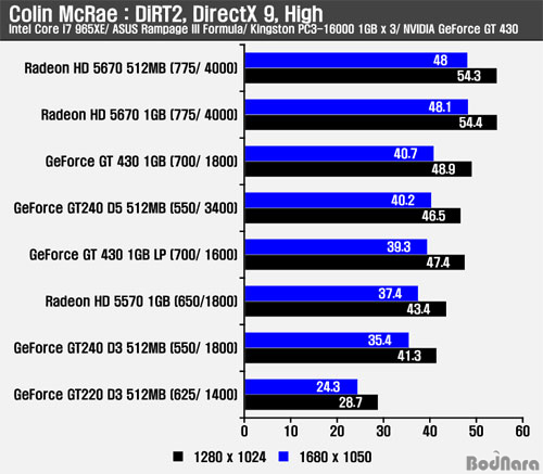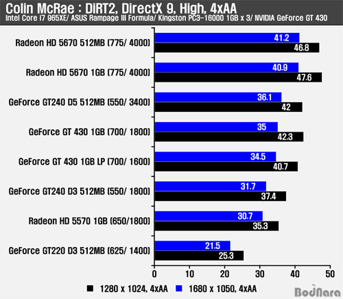 Äݸ° ¸Æ·¹ÀÌ ´õÆ®2¿¡ ¾ÈƼ¾Ù¸®¾î½ÌÀ» Àû¿ëÇÏÁö ¾ÊÀ» °æ¿ì ÁöÆ÷½º GT 240 D5 512MB¸¦ ¾Õ¼± ÇÁ·¹ÀÓÀ» Á¦°øÇß´Ù. ¾ÈƼ¾Ù¸®¾î½ÌÀ» Àû¿ëÇÒ °æ¿ì ¸Þ¸ð¸® Ŭ·°ÀÌ ³ôÀº ÁöÆ÷½º GT 430 1GB ¹öÀüÀº ÁöÆ÷½º GT 240 D5 512MBº¸´Ù ¾à°£ ³·Àº ½ºÄھ Á¦°øÇÏ¿© ¸Þ¸ð¸® ´ë¿ªÆø µî¿¡ µû¸¥ Â÷À̸¦ ³ªÅ¸³Â´Ù. ±×·¯³ª, ¶óµ¥¿Â HD 5570¿¡´Â ¾Õ¼¹À¸³ª HD 5670¿¡´Â 3DMark Vantage¿Í °°ÀÌ ³·Àº ¼º´ÉÀ» Á¦°øÇß´Ù.