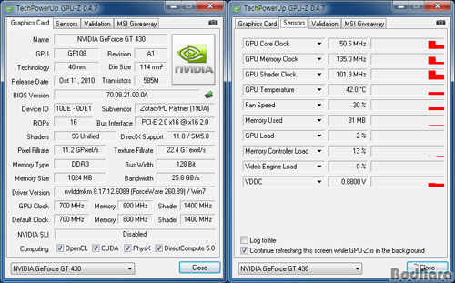 ÁöÆ÷½º GT 430À» ºñ·ÔÇÑ ±×·¡ÇÈÄ«µåµéÀÇ ¿Âµµ ÃøÁ¤Àº GPU-Z 0.4.7À» ÀÌ¿ëÇÏ¿´À¸¸ç, 3DMark Vantage Extreme Preset (1920 x 1200, 4xAA/ 16xAF)¸¦ ÁøÇà ¿Ï·á ÈÄÀÇ ¿Âµµ¿Í Àüü ½Ã½ºÅÛÀÇ ¼ÒºñÀü·ÂÀ» ºñ±³Çß´Ù.