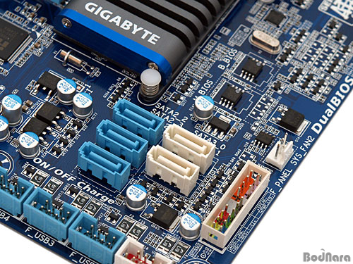 H67 Ĩ¼ÂÀº 6°³ÀÇ SATA Æ÷Æ®¸¦ Á¦°øÇϴµ¥ ÆÄ¶õ»ö 3Æ÷Æ®´Â SATA2 (3Gbps), ¹éÆÐ³Î 1Æ÷Æ®¿¡ eSATA2 (3Gbps), ÇϾá»ö 2Æ÷Æ®´Â SATA3 (6Gbps)¸¦ ³×ÀÌÆ¼ºê·Î Áö¿øÇÑ´Ù.