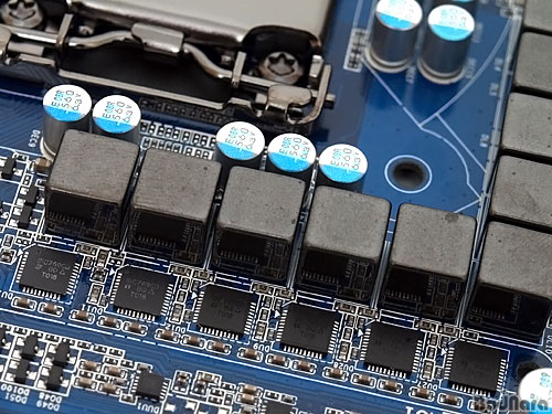 ¸ÞÀκ¸µå Àü¿øºÎ´Â vishay SiliconixÀÇ DrMOS (SIC769CD) ¼ÒÀÚ¸¦ ÀÌ¿ëÇØ Àü¿øºÎ¸¦ ±¸¼ºÇÑ´Ù. DrMOS ¼ÒÀÚ´Â ÀÏ¹Ý ¸ð½ºÆê°ú ¸ð½ºÆê µå¶óÀ̹ö ±¸¼ºº¸´Ù ¹ß¿ Á¦¾î¿Í Àü·ÂÈ¿À²¸é¿¡¼ À¯¸®ÇÏ´Ù.