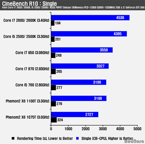 ÀÖ´Ù. ½Ì±Û ½º·¹µå½Ã ÄÚ¾î i5 760 ´ëºñ ÄÚ¾î i5 2500/ 2500K´Â 36.36%, ÄÚ¾î i7 870 ´ëºñ
