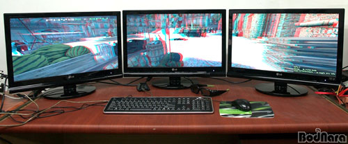 ¿£ºñµð¾Æ (NVIDIA)´Â AMD°¡ ¾ÆÀÌÇÇ´ÏÆ¼ (Eyefinity)¸¦ ÅëÇØ ´ÙÁ߸ð´ÏÅÍ Áö¿ø¿¡ Àû±ØÀûÀÎ °Í°ú ´Þ¸® Àü¹®°¡¿ë ½ÃÀåÀ» Á¦¿ÜÇÏ°í µ¥½ºÅ©Å¾ ȯ°æ¿¡¼ ´ÙÁ߸ð´ÏÅÍ Áö¿ø µµÀÔ¿¡ Àû±ØÀûÀÌÁö ¾Ê´Ù. ÀÌ´Â »ç¿ëÀÚÀÔÀå¿¡¼ °æÀï»çº¸´Ù ÁÁÀº Æò°¡¸¦ ³»¸®±â´Â ¾î·Á¿ï °ÍÀÌ´Ù.