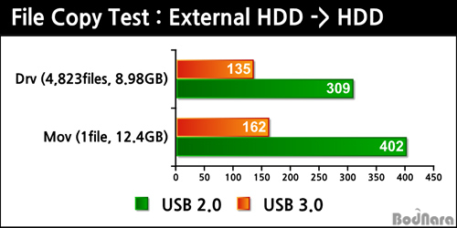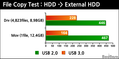 ¿ì¼± Àб⠼ӵµ°¡ Áß¿ä½ÃµÇ´Â ¿ÜÀå Çϵ忡¼ ³»Àå Çϵå·ÎÀÇ º¹»çÀÇ °æ¿ì °á°ú¿¡¼ º¼ ¼ö ÀÖµíÀÌ USB 3.0·Î ¿¬°á½Ã¿¡ Drv ¹× Mov Æú´õ º¹»ç Å×½ºÆ® ¸ðµÎ 3¹è ÀÌ»ó ¾Õ¼´Â ¸ð½ÀÀ» º¸¿©ÁÖ°í ÀÖ´Ù. ÀÌ´Â ¾Õ¼ »ìÆìº¸¾Ò´ø º¥Ä¡¸¶Å© ÇÁ·Î±×·¥°ú µ¿ÀÏÇÑ °á°ú¸¦ º¸¿©ÁÖ°í ÀÖ´Ù.
