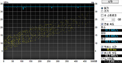 ¿¬¼Ó µ¥ÀÌÅÍ ÀÐ±â ¹× 512KB µ¥ÀÌÅÍ Àбâ Ç׸ñÀÇ Å×½ºÆ® °á°ú¸¦ »ìÆìº¸¸é USB 3.0°ú 2.0 °úÀÇ Å« Â÷À̸¦ º¸ÀÌ´Â °ÍÀ» È®ÀÎÇÒ ¼ö ÀÖ´Ù.