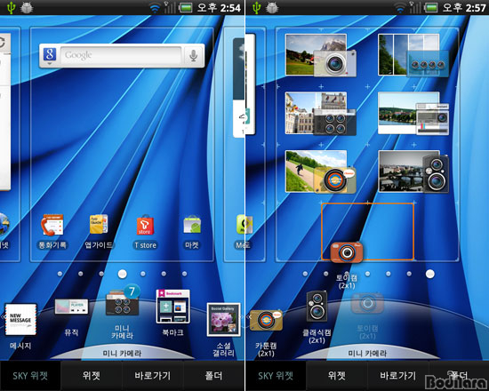 SKY À§Á¬¿¡¼ ¹Ì´Ï Ä«¸Þ¶ó¸¦ µî·ÏÇϰí Ȩ ½ºÅ©¸°¿¡¼ ½ÇÇàÇϸé Ä«¸Þ¶ó ¾ÛÀÌ ½ÇÇàµÇÁö ¾Ê°í ¹Ù·Î ÆË¾÷ ½ºÅ¸ÀÏÀÇ ¹Ì´Ï Ä«¸Þ¶ó ȸéÀÌ ³ªÅ¸³´Ù. ¹Ì´Ï Ä«¸Þ¶ó UI´Â ½ÉÇÃÇÏ°Ô Ä«¸Þ¶ó È¿°ú¸¦ Ç¥½ÃÇÏ´Â ¾ÆÀÌÄܰú ¼ÅÅÍ ¹öư, Àü/Èĸé Ä«¸Þ¶ó Àüȯ ¹öư¸¸ Á¦°øµÈ´Ù.