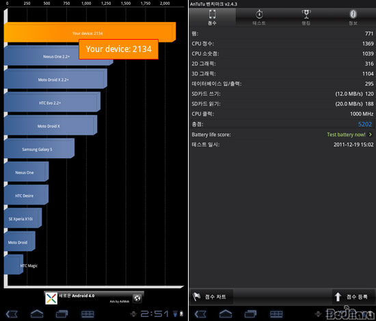 À¥ ºê¶ó¿ìÀú ¼º´ÉÀ» ÃøÁ¤ÇÏ´Â Vellamo À¥ ºê¶ó¿ì¡ º¥Ä¡¸¶Å© °á°ú´Â 1091Á¡À¸·Î ÀÏ¹Ý µà¾óÄÚ¾î ¾Èµå·ÎÀ̵åÆù°ú ºñ½ÁÇÑ ¼öÁØÀ» º¸¿´°í, ¸ð¹ÙÀÏ APÀÇ 3D ±×·¡ÇÈ ¼º´ÉÀ» ÃøÁ¤ÇÏ´Â An3DBenchXL Å×½ºÆ® °á°ú´Â 30642Á¡À¸·Î 1280x800 ÇØ»óµµÀÇ °¶·°½ÃÅÇ 10.1º¸´Ù ³ôÀº Á¡¼ö¸¦ ±â·ÏÇß´Ù.