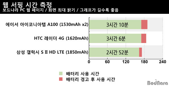 µð½ºÇ÷¹ÀÌ ¹à±â¸¦ ÃÖ´ë·Î ÇÑ »óÅ¿´°í LTE ½º¸¶Æ®ÆùµéÀº 3G/4G Åë½Å ±â´ÉÀ» ²ô°í Å×½ºÆ®Ç߱⠶§¹®¿¡ ¾ÆÀÌÄڴϾÆÅÇ A100ÀÇ ½ÇÁ¦ À¥ ¼ÇÎ ½Ã°£Àº Å×½ºÆ® °á°úº¸´Ù Á»´õ ¿À·¡ °¥ °ÍÀ¸·Î º¸ÀδÙ.
