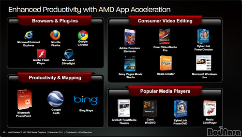 AMD´Â GPUÀÇ ½ºÆ®¸²ÇÁ·Î¼¼¼¸¦ ÀÌ¿ëÇÑ GPGPU ±â¼úÀÎ ATI StreamÀ» ¹ßÀü, OpenCL°ú C++ AMP¿¡ ±â¹ÝÇÑ CPU¿Í GPUÀÇ À̱âÁ¾ ÄÄÇ»ÆÃ ±â¼úÀÎ APP(Accelerated Parallel Processing) °¡¼ÓÀ» ÅëÇÑ GPUÀÇ È°¿ë ¿ª½Ã AMD ±×·¡ÇÈ Ä«µåÀÇ ÀåÁ¡À¸·Î, CPU¿Í GPU¸¦ ÅëÇÕÇÑ Ç»Àü APU¸¦ ¸ÞÀνºÆ®¸² Ç÷§Æû¿¡ ¹èÄ¡Çϰí, CPU¿Í GPUÀÇ À̱âÁ¾ ÄÄÇ»ÆÃ ±â¼ú FSA ºê·£µåÈ ½Ãµµµî, AMD´Â APP ´ëÁßȸ¦ À§ÇØ ²ÙÁØÇÑ ³ë·ÂÀ» ±â¿ïÀ̰í ÀÖ´Ù.