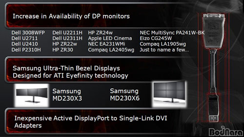 ÄÁÅÙÃ÷ ¾÷üµé°úÀÇ Á¦ÈÞ¸¦ ºñ·ÔÇØ ¸ð´ÏÅÍ Á¦Á¶È¸»çµé°ú Çù·ÂÀ¸·Î HD3D Áö¿ø ¸ð´ÏÅÍ, ƯÈ÷ ¸ð´ÏÅÍ ¼¼ °³¸¦ ÀÌ¿ëÇÑ Eyefinity + HD3D¸¦ À§ÇØ ÇʼöÀûÀÎ DisplayPort ±â¹Ý HD3D Áö¿ø ¸ð´ÏÅ͸¦ ´Ã·Á ³ª°¡´Â °ÍÀÌ ¾ÕÀ¸·Î AMD HD3DÀÇ ¼º°ø¿¡ º¯¼ö°¡ µÉ °ÍÀÌ´Ù.