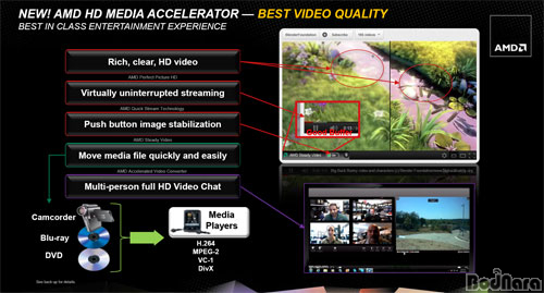 ¿£ÅÍÅ×ÀÎ¸ÕÆ®ÀûÀÎ ¿ä¼Ò ¹× ÄÄÇ»ÆÃÀÇ ½Ã°¢ÀûÀÎ Ãø¸é °Á¶µÊ¿¡ µû¶ó AMD´Â PC¿¡¼ Çâ»óµÈ ºñµð¿À ÈÁú ±¸ÇöÀ» À§ÇØ AMD HD ¹Ìµð¾î °¡¼Ó±â(Media Accelerator)¸¦ Á¦°øÇϸç, AMD HD ¹Ìµð¾î °¡¼Ó±â(Media Accelerator)´Â ÀÎÅÍ³Ý ÄÁÅÙÃ÷ÀÇ ºñµð¿À ÈÁú ÃÖÀûÈ ¹× ºñµð¿À ÆÄÀÏ º¯È¯À» °¡¼ÓÇØÁØ´Ù.
