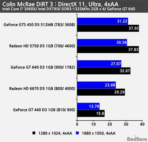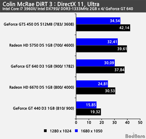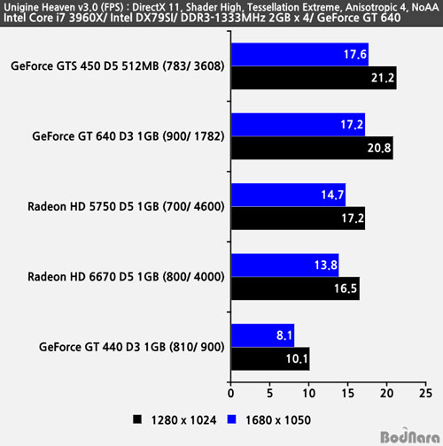 DX11°ú Å×¼¿·¹ÀÌÀÌ¼Ç ¼º´ÉÀÌ À¯¸®ÇÑ ÄÉÇ÷¯ ±â¹Ý ÁöÆ÷½º GT 640Àº ÁöÆ÷½º GTS 450¿¡ ÀÌ¾î °¡Àå ³ôÀº ÇÁ·¹ÀÓ°ú ó¸® ¼º´ÉÀ» Á¦°øÇßÀ¸¸ç, ¶óµ¥¿Â HD 5750°ú ¶óµ¥¿Â DH 6670Àº ±× µÚ¸¦ À̾ú´Ù. ÄÉÇ÷¯´Â Æä¸£¹Ì (Fermi) °è¿º¸´Ù Å×¼¿·¹ÀÌÅÍ ¼ö´Â ÁÙ¾úÁö¸¸, È¿À² °³¼±À¸·Î DX11°ú Å×¼¿·¹ÀÌ¼Ç Ã³¸®°¡ Áõ°¡µÇ´Â °ÔÀÓ µî¿¡¼ À¯¸®ÇÒ °ÍÀ¸·Î ¿¹»óµÈ´Ù.