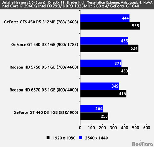 ȯ°æ°ú ¿£ºñµð¾Æ (NVIDIA) °è¿ Ä«µå°¡ Àü¹ÝÀûÀ¸·Î ¿ì¼öÇѵ¥ ÁöÆ÷½º GT 640Àº ÁöÆ÷½º GTS 450º¸´Ù´Â ³·Àº ÇÁ·¹ÀÓÀ» Á¦°øÇß°í ¶óµ¥¿Â HD 6670º¸´Ù À¯¸®, ¶óµ¥¿Â HD 5750¿¡´Â ¾à°£ ¸ø¹ÌÄ¡´Â ÇÁ·¹ÀÓÀ» Á¦°øÇß´Ù.