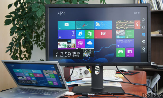 MS¿¡¼ °ð Ãâ½ÃÇÒ Â÷¼¼´ë ¿î¿µÃ¼Á¦ À©µµ¿ì 8ÀÌ ¼³Ä¡µÈ ³ëÆ®ºÏÀº ¿ïÆ®¶ó»þÇÁ U2713 ¸ð´ÏÅÍ¿¡ ¿¬°áÇϸé À§¿Í °°ÀÌ °£´ÜÇÏ°Ô ¿ÜºÎ ¸ð´ÏÅÍ ¿¬°á ¹æ¹ýÀ» ¼±ÅÃÇÒ ¼ö ÀÖ´Ù. Á»´õ º¹ÀâÇÑ ±âÁ¸ µð½ºÇ÷¹ÀÌ ¼³Á¤ÀÌ ÇÊ¿äÇÑ »ç¶÷Àº À©µµ¿ì 8ÀÇ µ¥½ºÅ©Å¾ ¸ðµå¸¦ ¾²¸é µÈ´Ù.