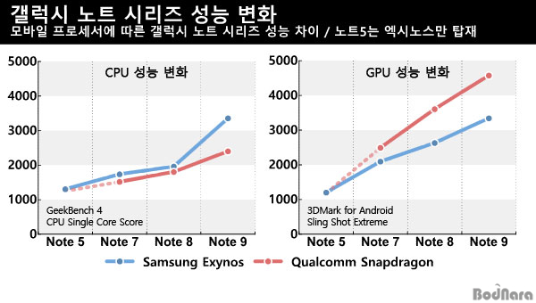 GPU ¼º´É ºñ±³¿Í ºñ½ÁÇÑ °á°ú¸¦ º¸¿©ÁØ´Ù. °¶·°½Ã S9 ½Ã¸®Áî ¶§ ³í¶õÀÌ µÆ´ø CPU ½ºÄÉÁÙ·¯ °ü·Ã Á¤Ã¥°ú ÀÌ·Î ÀÎÇÑ ¼º´É Ç϶ôÀÌ °¶·°½Ã