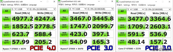 3.0°ú PCIe 4.0 Ç÷§ÆûÀÇ ´ë¿ªÆø Â÷À̸¦ ´Ü¹ø¿¡ ±¸º° ÇÒ ¼ö ÀÖ´Ù. PCIe 4.0 Áö¿øÀÌ ÀÌ·ïÁø AMD 3¼¼´ë