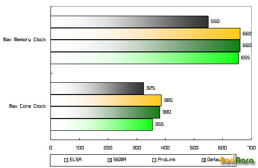 ¸ðµå¿¡¼ÀÇ ±âº» Ŭ·°Àº ÄÚ¾î/¸Þ¸ð¸®°¡ 325MHz/550MHzÀÌ´Ù. ¸Þ¸ð¸®ÀÇ Å¬·°Àº µ¿ÀÏÇÑ ¸ðµâÀ» »ç¿ëÇ߱⠶§¹®¿¡ ¿À¹öŬ·° ¹üÀ§°¡