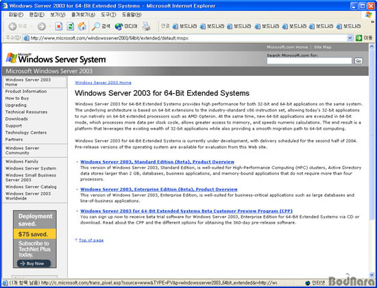 Windows Server 2003 Æò°¡ÆÇÀº 32bit ¹öÀü°ú 64bit ¹öÀüÀÌ Àִµ¥ 64bit ¹öÀüÀº ´Ù½Ã ÀÎÅÚÀÇ ¾ÆÀÌÅ״ϾöÀ» À§ÇÑ IA-64¿Í AMDÀÇ OpteronÀ» À§ÇÑ AMD64 ¹öÀüÀ¸·Î ³ª´²Áø´Ù.