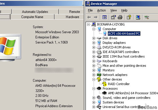 Á¦¾îÆÇÀÇ ÀåÄ¡°ü¸®ÀÚ¸¦ º¸¸é x86-64 ±â¹ÝÀÇ PC¶ó´Â °Í°ú Opteron Á¤º¸°¡ ¾Æ´Ñ Athlon64 CPUÀÓÀ» È®ÀÎÇÒ ¼ö ÀÖ´Ù.