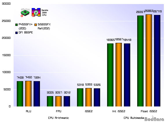 ·¹ÆÛ·±½º º¸µå´Â 202.0MHz, DFI Infinity 865PE´Â 200.5MHz°¡ ÃøÁ¤µÇ¾ú´Ù. ¸ðµç º¸µå¸¦ µ¿ÀÏÇÑ FSB¿¡ ¸ÂÃç¼