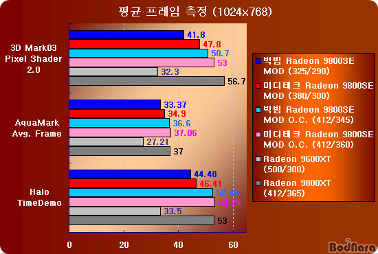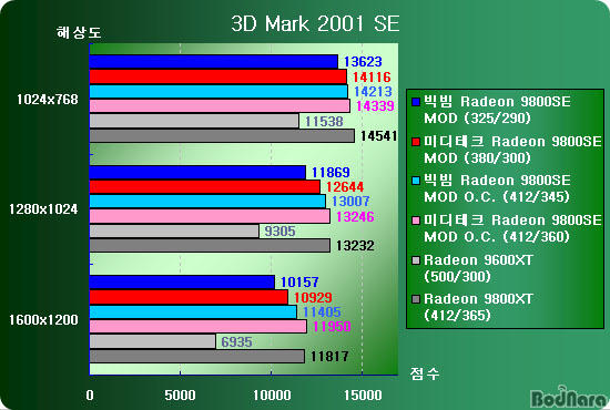 7. ºÎ·Ï: Radeon 9800SE °³Á¶/¿À¹ö¿¡ µû¸¥ ¼º´Éº¯È­ ºñ±³
