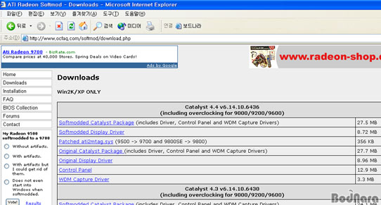 ¡ã Radeon 9800SEÀÇ °³Á¶´Â ÀÌÀüÀÇ ¹ÙÀÌÅÚ Radeon 9800SEÀÇ ¸®ºä¿Í µ¿ÀÏÇÏ°Ô °³Á¶ µå¶óÀ̹ö°¡ Àû¿ëµÈ SoftMOD µå¶óÀ̹ö¸¦ ÀÌ¿ëÇÏ¿´´Ù. Radeon 9800 SE¸¦ °³Á¶ÇÒ ¼ö ÀÖ´Â ÀÚ·áµéÀº ÇØ¿Ü »çÀÌÆ®ÀÎ OCFAQ(http://www.ocfaq.com)¿¡ ¿Ã¶ó¿ÍÀִµ¥ ÀÌ »çÀÌÆ®¿¡´Â Catalyst ¹öÀüº° °³Á¶µå¶óÀ̹ö¿Í °¢ Radeon Á¦Ç°º° ¹ÙÀÌ¿À½ºµµ ÀÖ´Ù.