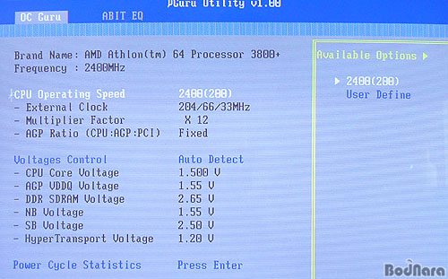 ¸Þ´º°¡ ÀÖ´Ù. Àü¾Ð Á¶ÀýÀº CPU, AGP, ¸Þ¸ð¸®, ³ë½º ºê¸´Áö, »ç¿ì½º ºê¸´Áö, ÇÏÀÌÆÛÆ®·£½ºÆ÷Æ® µî ´Ù¾çÇÑ ºÎºÐ¿¡ ´ëÇÑ Àü¾Ð Á¶ÀýÀÌ