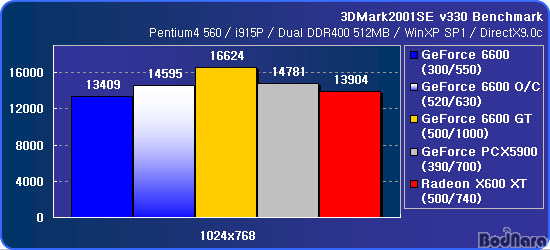 ±×·¡ÇÈ ±â´É¿¡ ÁßÁ¡À» µÐ 3DMark03 v340 º¥Ä¡¸¶Å© Å×½ºÆ® °á°ú´Â ¿À¹öŬ·°À¸·Î ÀÎÇÑ GeForce 6600ÀÇ ¼º´É Çâ»óÀ» ¿©½ÇÈ÷