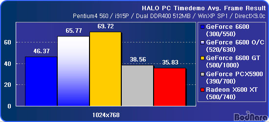 °¡´ÉÇѰ¡Àε¥, GeForce 6600ÀÇ °æ¿ì 1024x768 High Quality ¿É¼Ç¿¡¼ ¿À¹öŬ·°À¸·Î 60ÇÁ·¹ÀÓÀ» ³Ñ°Ü GeForce